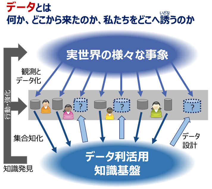 人・計算機・環境など、多様な事物のインタラクションによるシステムのダイナミクスを解明し、制度設計、目的に応じたデータの収集・情報化・意思決定プロセス支援により、データ流通社会におけるデータを巡る営みの新しいパラダイム創成を目指しています。